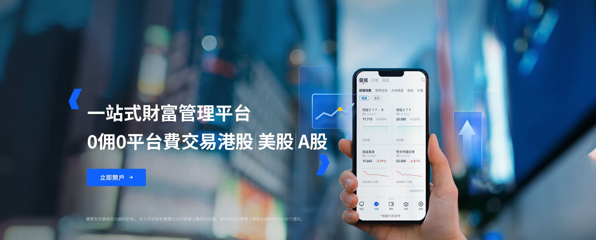A股,美股,港股,虛擬貨幣外匯全方位投資一站式全方位投資平台,覆蓋中國A股、美股、港股市場。支持比特幣、以太坊等虛擬貨幣,以及主流外匯對。豐富的衍生品與基金產品,助您捕捉全球市場契機。